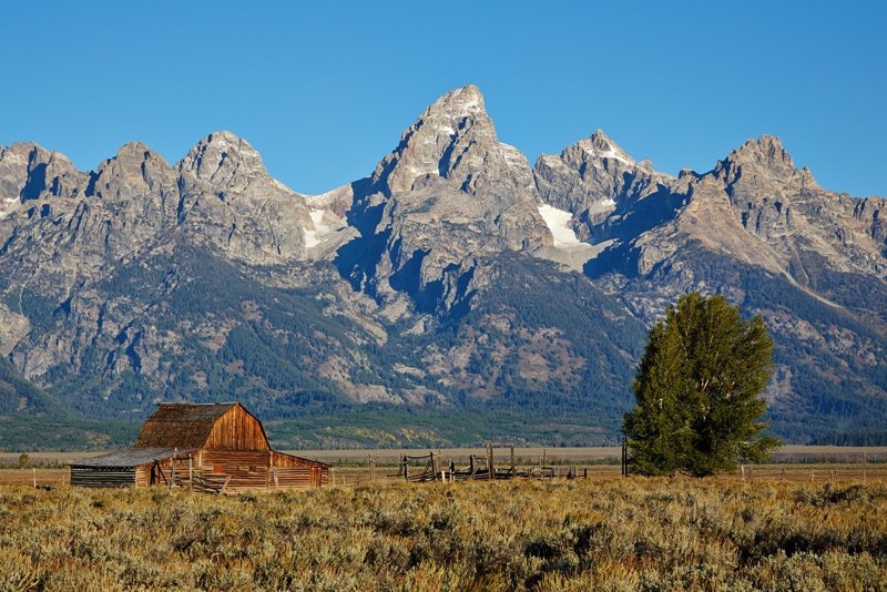 Tetons and barn